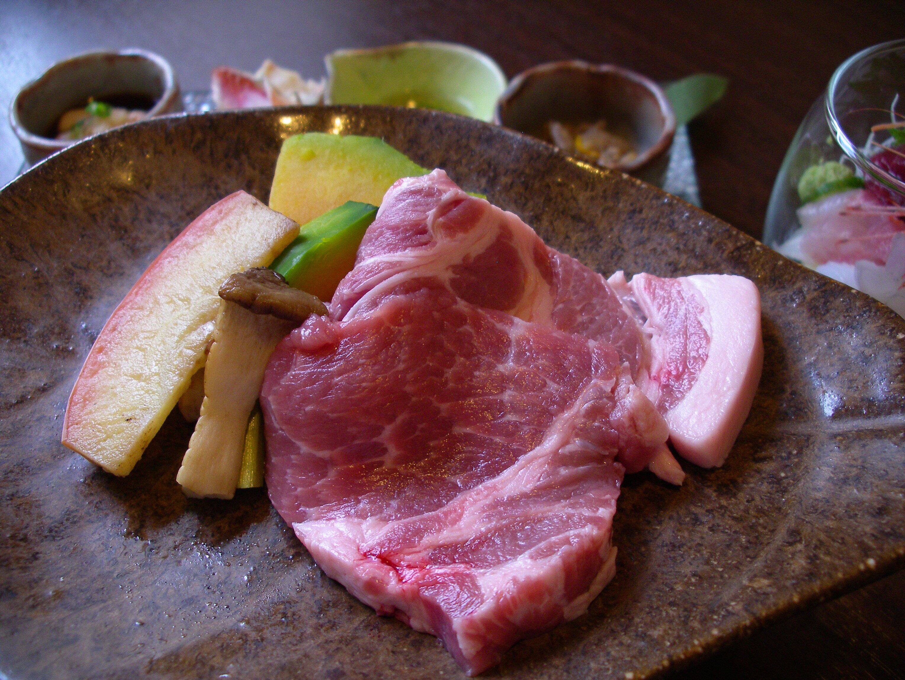 信州産の厳選素材を使用した、蕎麦と信州豚味噌漬け焼きのセットです。